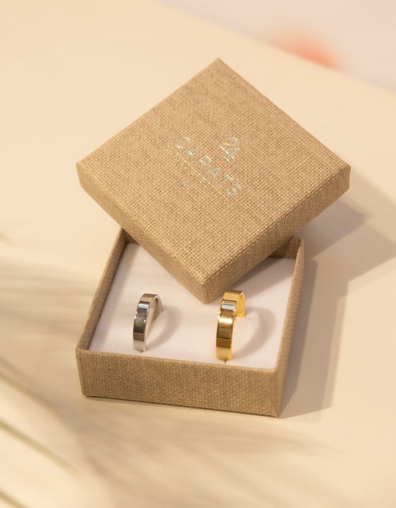 L’or 24 carats est composé d’environ 99 % d’or pur. Trop malléable, il n’est pas utilisé tel quel en bijouterie.