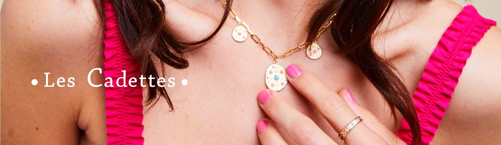Les bijoux Les Cadettes varient les styles et permettent de s’habiller de plusieurs colliers, de porter plusieurs bracelets ou plusieurs bagues sur un doigt. Faîtes-vous plaisir en cumulant ces petits bijoux. Certains se parent de petites perles ou de détails colorés, d’autres révèlent de jolis effets de brillance grâce à leur serti d’oxydes de zirconium ou leur soigneuse finition laque.