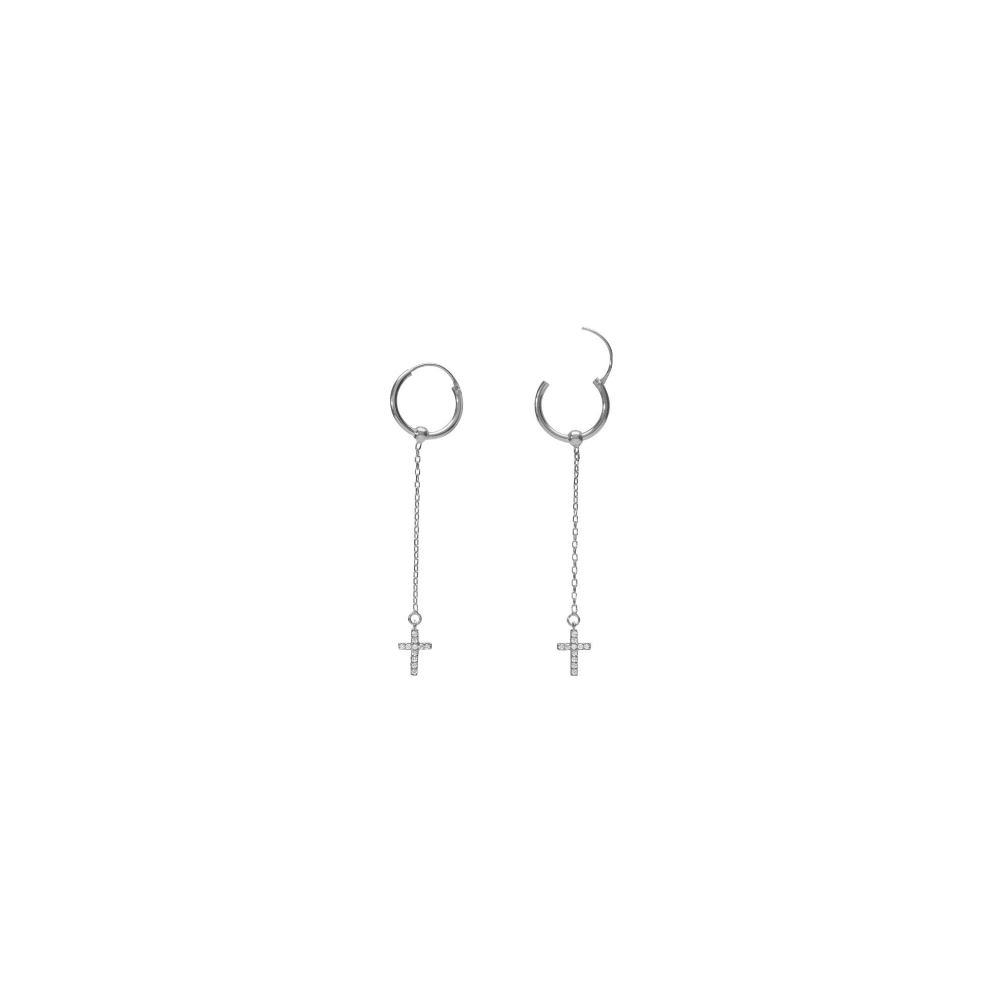 Boucles d'oreilles créoles argent rhodié 15mm chainette et croix oxydes blancs