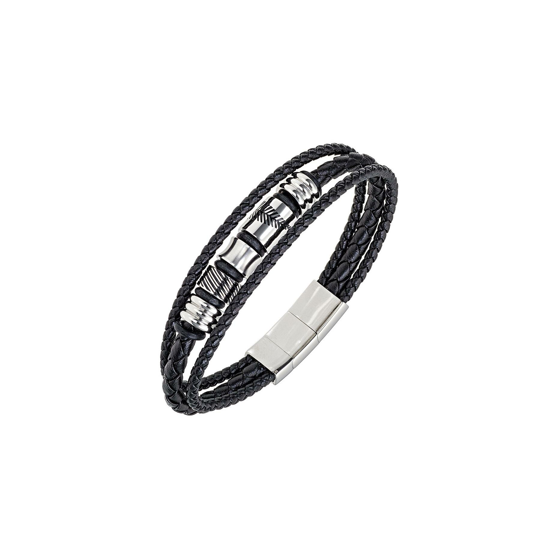 Bracelet All Blacks en acier et cuir