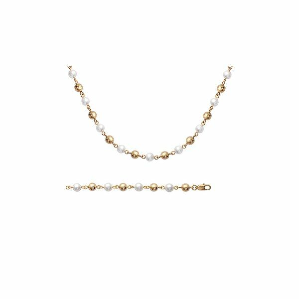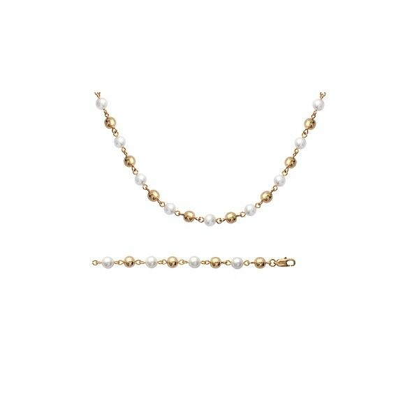 Bracelet en plaqué or et perles d'imitation, 18cm