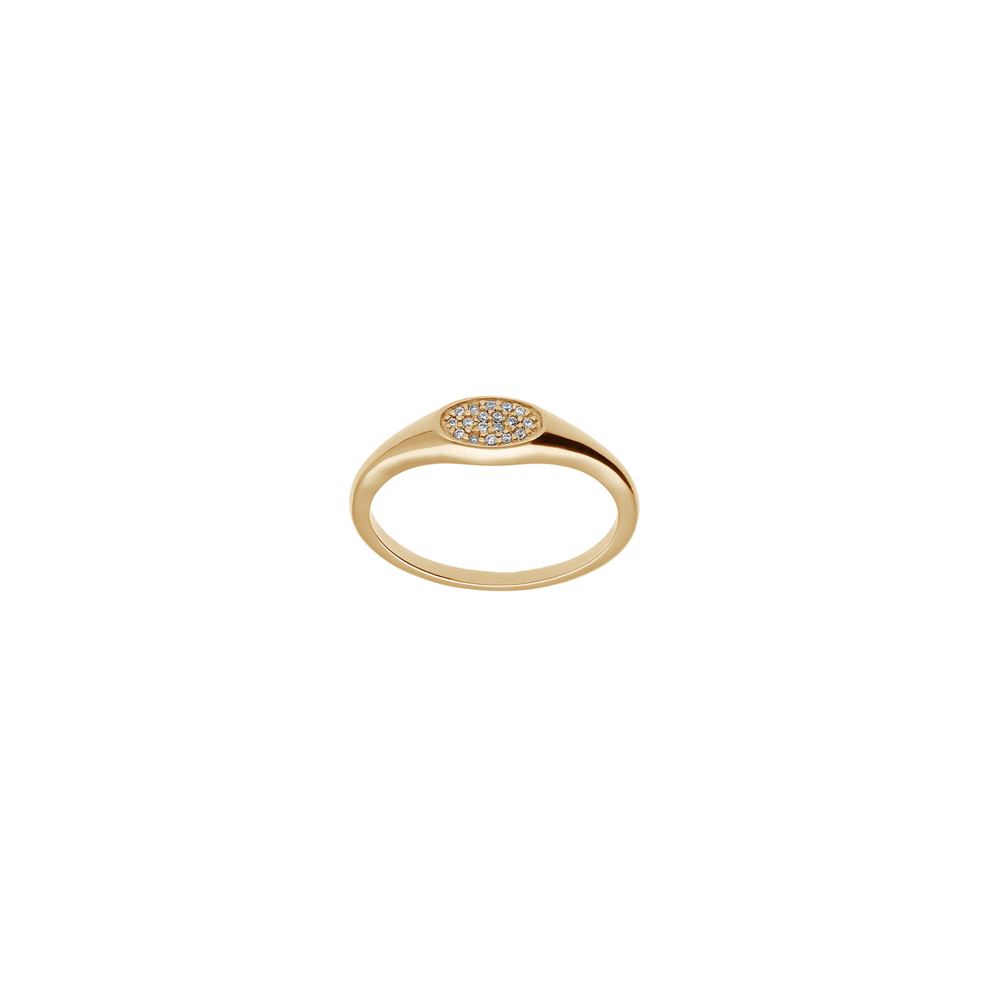 Chevalière ovale en plaqué or et oxydes de zirconium, taille 54