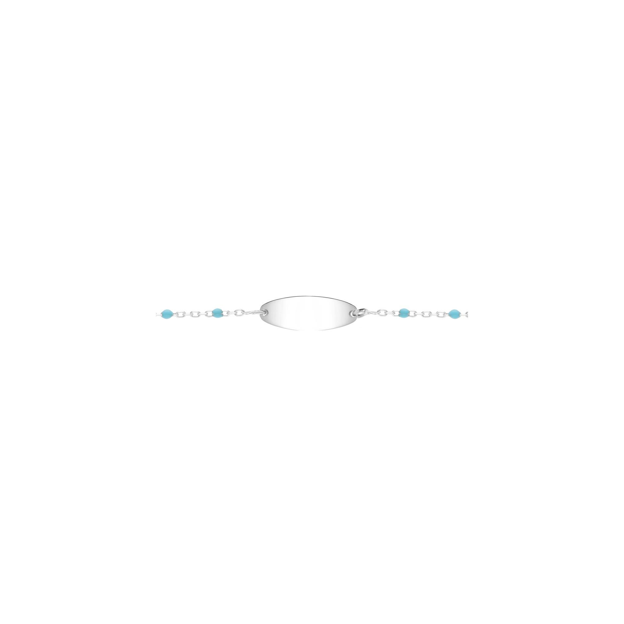 identité bebe résine bleu turquoise plaque ovale argent rhodié 13+2cm